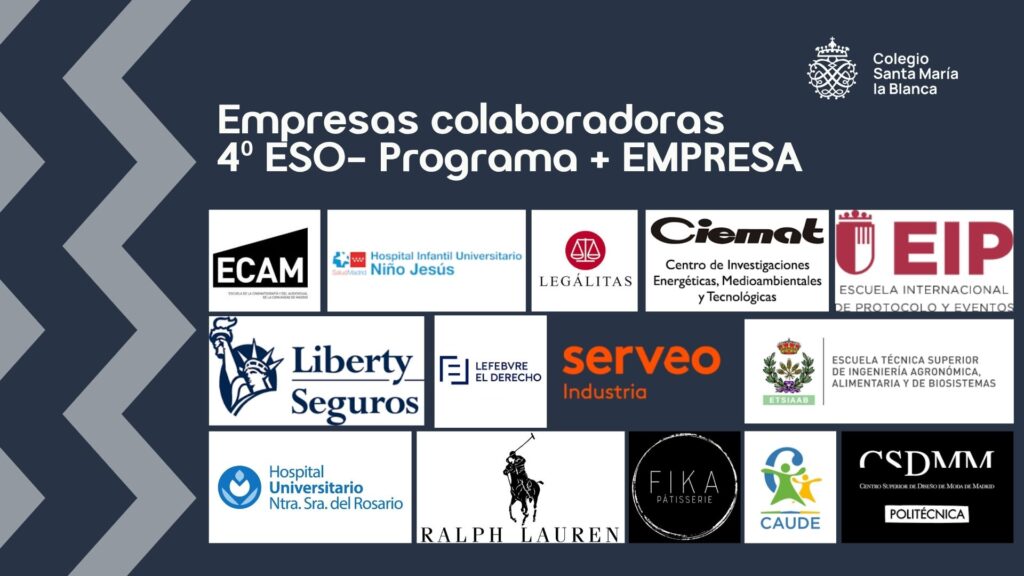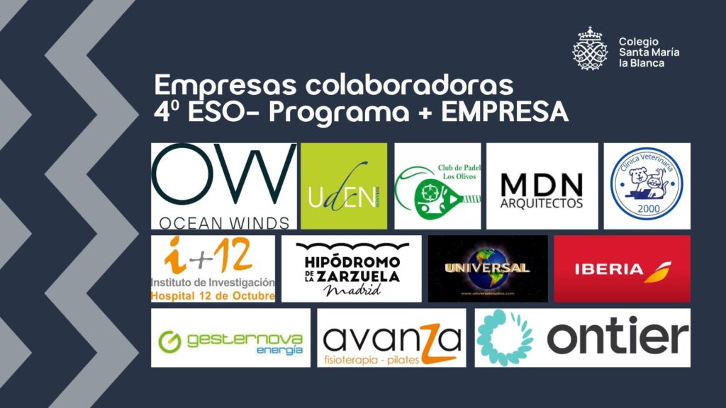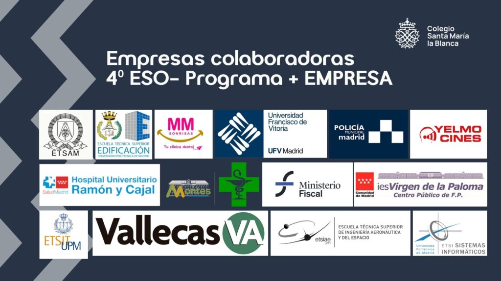 En Santa María la Blanca seguimos apostando por una educación que trasciende el aula y prepara a nuestros alumnos para afrontar con criterio y seguridad su futuro académico y profesional. En este contexto, durante los meses de marzo y abril, nuestros alumnos de 4º de ESO han participado en el programa 4º ESO +Empresa, una iniciativa de la Comunidad de Madrid que acerca el mundo educativo a la realidad laboral.