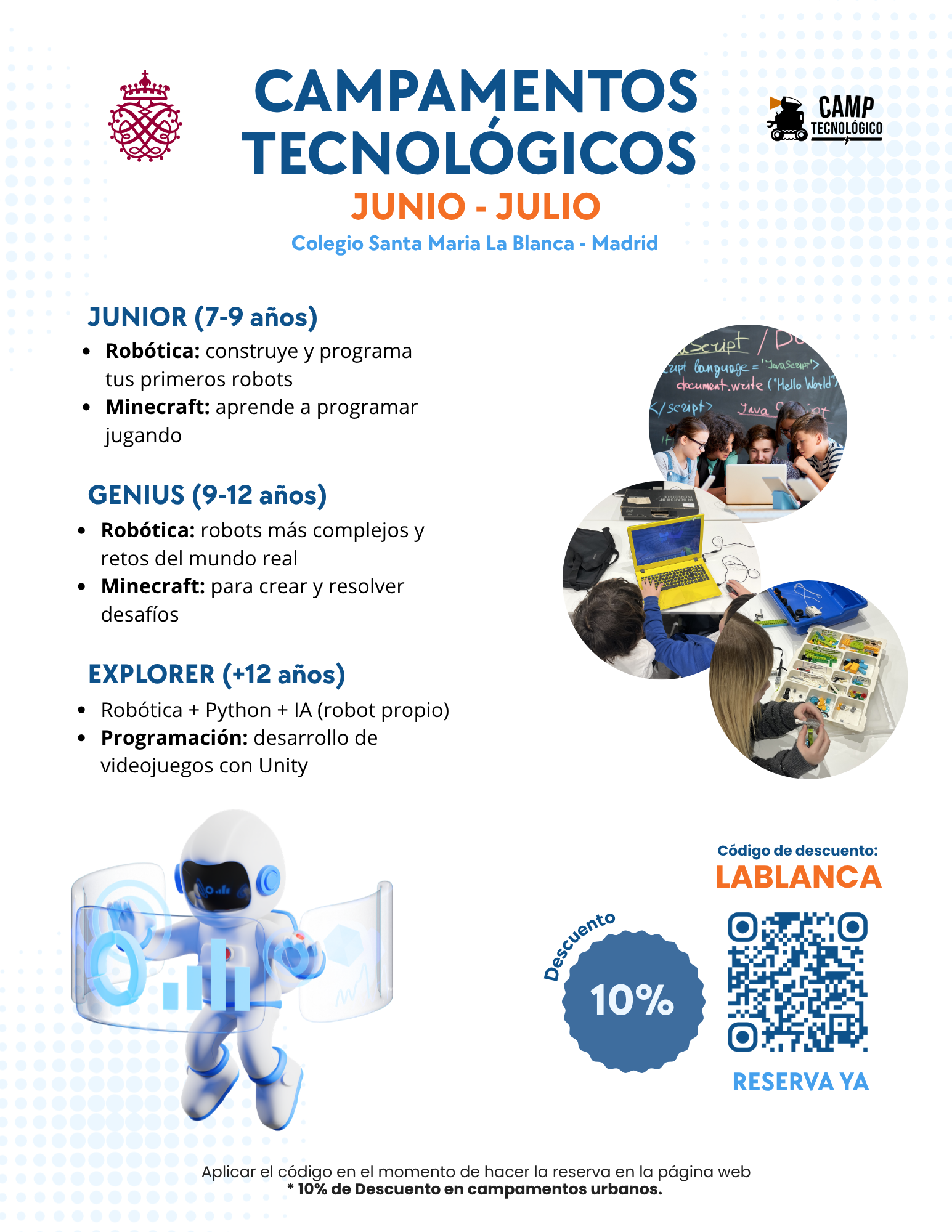 Camp tenológico ofrecerá este verano talleres de programación, electrónica y robótica en sus campamentos vacacionales, para niños/as y adolescentes de 5 a 17 años, con una nueva oferta de talleres adaptados a cada franja de edad.