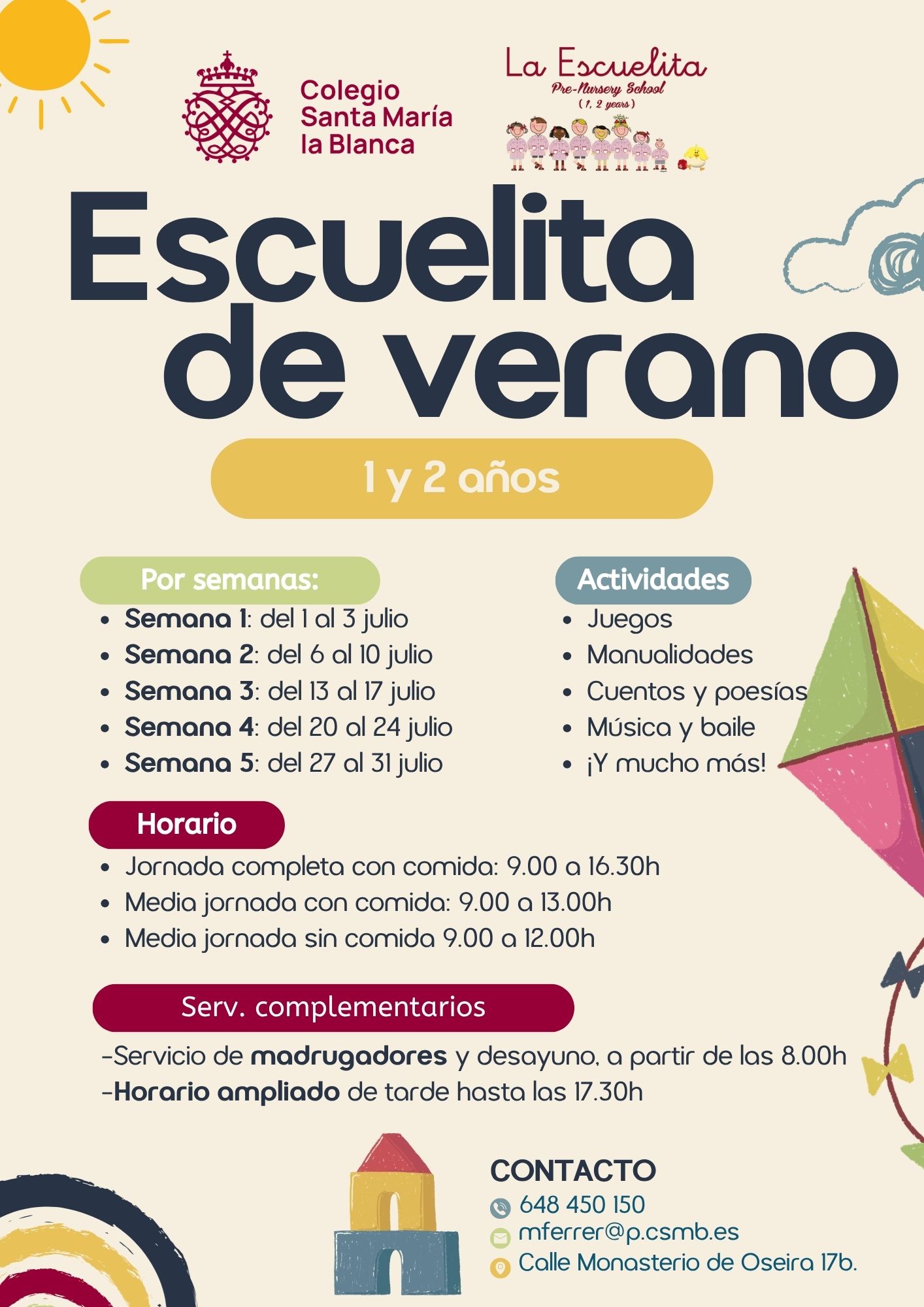 * Servicio de madrugadores desde las 8:00h con desayuno incluido y servicio de permanencia por las tardes hasta las 18:00h.