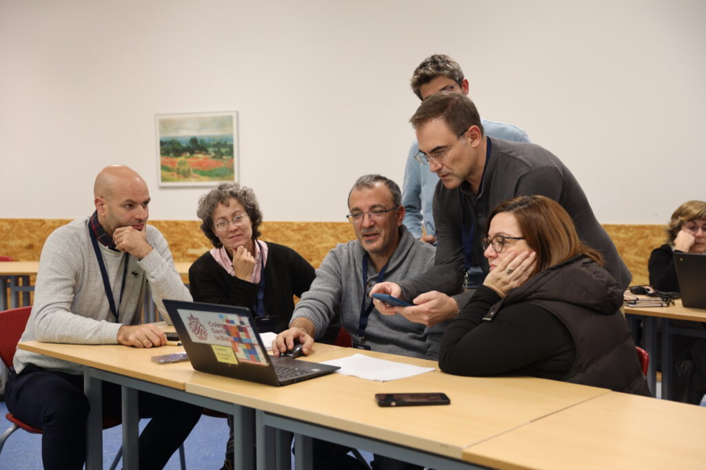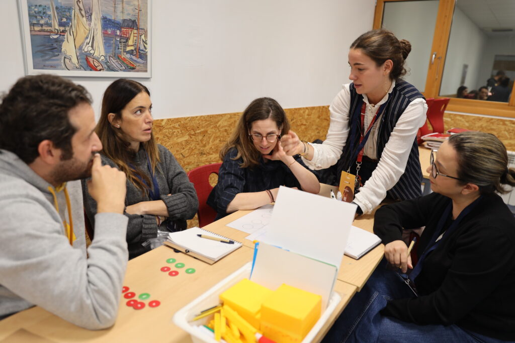 Después de esta inspiradora introducción, dieron comienzo los talleres, centrados en metodologías innovadoras, inteligencia artificial, bienestar emocional y valores en la era digital. Aunque fuera llovía, dentro de las aulas se respiraba entusiasmo: las ideas fluían, las conversaciones echaban humo y las caras de sorpresa, expectación e ilusión lo decían todo.